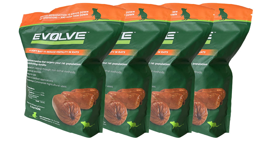 Evolve Rat is a revolutionary product for consumers who want to reduce rat nuisance. Instead of killing rats outright, this product tackles the real problem at its source: reproduction. Thanks to its intelligent formulation, Evolve reduces rat fertility, resulting in a long-term population reduction without endangering children, pets, or other animals in the area.